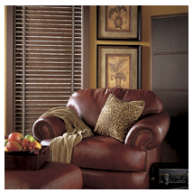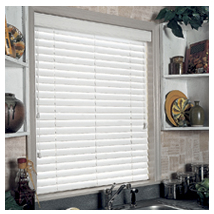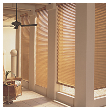 Like fine wood furniture, wood blinds add a special touch of warmth and rich, natural beauty to any room. They are available in a number of slat sizes, in a full range of finishes, from stains and paints to a gently textured sandblasted finish. Wood blinds consist of horizontal wood slats that can be tilted open or closed for light control and privacy.