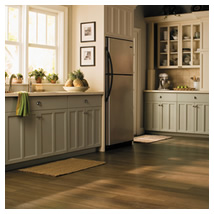 "laminated," to a dense wood core center and a synthetic backing material. It provides your home with an attractive and maintenance free hard surface flooring option that is versatile to fit an active lifestyle. Because it is engineered with layered construction and a high pressure laminate surface, it is virtually impossible for spills and scuffs to leave their mark. Simple and easy to maintain, laminate is an excellent choice for high traffic areas like hallways and family rooms, plus moisture areas such as kitchens and baths.